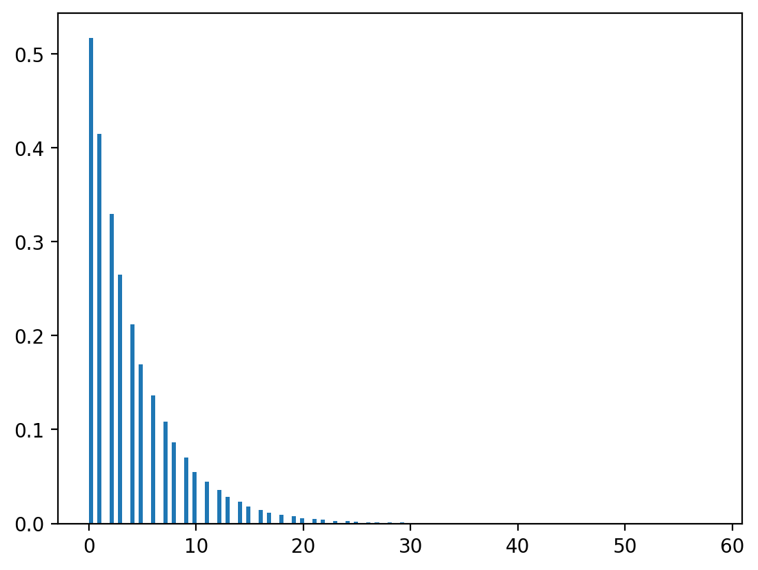 We can verify that \(x\) is indeed geometrically distributed by the following numpy program.